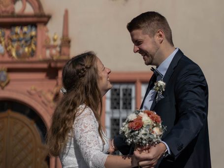 Caro und Joachim gaben sich an einem warmen Sommertag im Rathaus von Groß-Umstadt das Ja-Wort - mit Blick auf den lebendigen Marktplatz und inmitten einer Atmosphäre voller Leichtigkeit und Gefühl. Eine Trauung, die von echten Emotionen, liebevollen Blicken und stillen, bedeutungsvollen Momenten begleitet wurde.